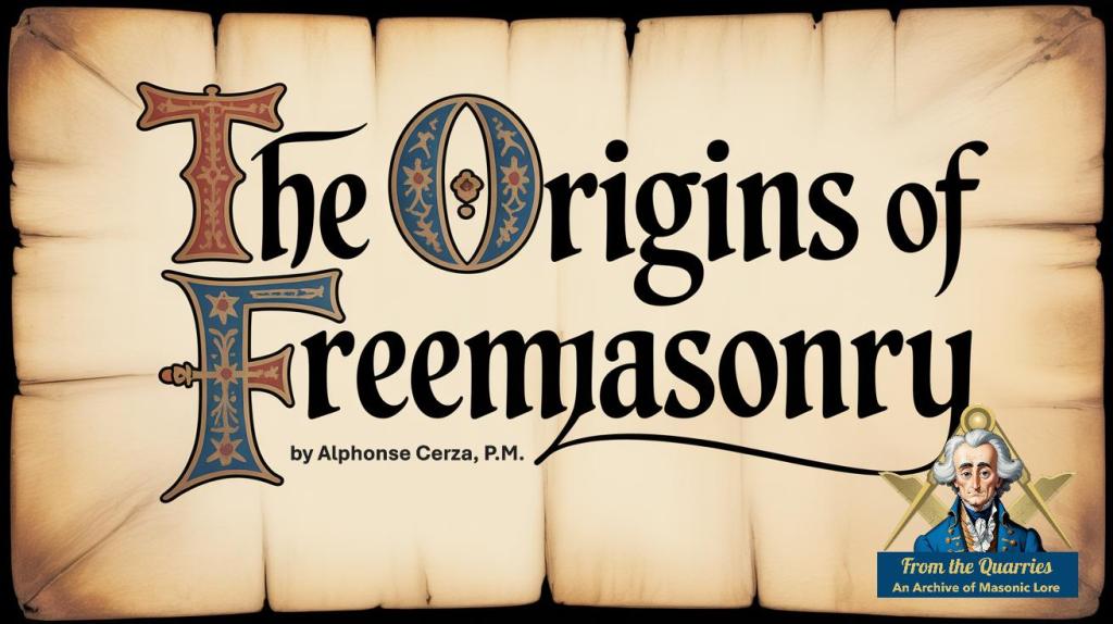 In this carefully argued presentation, The Origins of Freemasonry by Alphonse Cerza, P.M., dismantles the many romantic and speculative myths that have accumulated around the Craft’s beginnings, from the Temple of Solomon to the Garden of Eden, the Ancient Mysteries, Roman Collegia, and medieval cathedral legends. Drawing on respected Masonic historians such as Henry W. Coil and Christopher Haffner, and grounded in documentary evidence rather than imaginative analogy, Cerza demonstrates why most origin theories collapse under scholarly scrutiny.